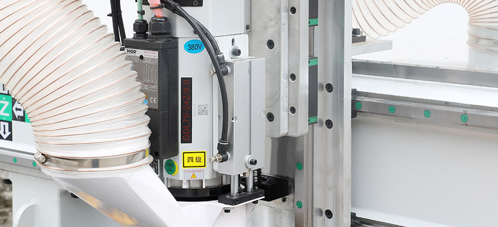 Промышленный электрошпиндель с воздушным охлаждением HQD (9 кВт - 24 000 об/мин) Конструкция и комплектующие данного электрошпинделя на 100% идентичны электрошпинделям ведущего мирового производителя шпинделей - компании HSD (Италия). Частота вращения (24 000 об/мин) и мощность (9,0 кВт) дает возможность осуществлять обработку деталей из древесины, а также ДСП, МДФ, пластика, акрила и многих других материалов. Охлаждение шпинделя во время его работы осуществляется потоком воздуха поступающим от вентилятора, при этом вентилятор не имеет связи валом электрошпинделя, что позволяет эффективно его охлаждать на любых рабочих оборотах |