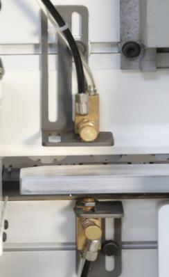 ПОДАЧА РАЗДЕЛЯЮЩЕЙ и ОЧИЩАЮЩЕЙ ЖИДКОСТИ Узел подачи разделяющей жидкости, расположен перед узлом предварительного фрезерования торца заготовки и предназначен предотвратить налипания клея на поверхность панели. 2 форсунки одновременно наносят жидкость сверху и снизу заготовки. Регулировка подачи необходимого количества жидкости. Улучшает обработку детали на последующих узлах. |