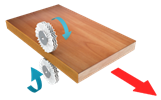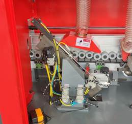 · За счет двух четырехсторонних пластин с плоским сечением ножа, расположенных сверху и снизу заготовки, убирает остатки клея и подчищает от микро неровностей. |