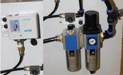 БЛОК ПОДГОТОВКИ ВОЗДУХА · Пневмо-система станка оснащена блоком AirTAC. · Регулировка давления и точный контроль подачи воздуха. · Состоит из резервуара с маслом для смазки системы масляным туманом, фильтра тонкой очистки и блока контроля распределения. · Необходимое давление 8 bar. |