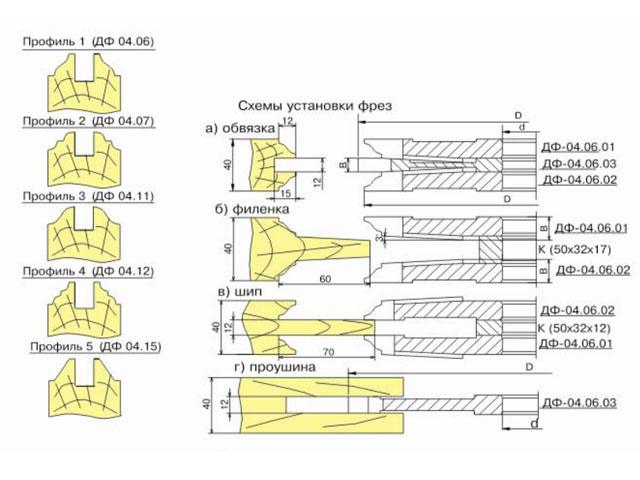 Комплект фрез предназначен для полного изготовления филенчатых дверей из древесины твердых и мягких пород на универсальных фрезерных станках. Фрезы затылованные изготавливаются с напайными пластинами Р6М5 или с напайными пластинами из твердого сплава ВК15. Комплект состоит из двух затылованных профильных фрез (левой и правой) и одной острозаточеной пазовой (с напайными пластинами из твердого сплава ВК15). Размеры шипа и филенки регулируются проставочными кольцами К.