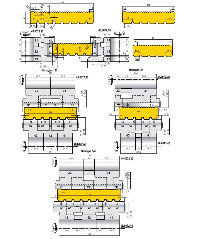 Комплект фрез для изготовления террасной доски с лицевой и обратной стороны на четырехсторонних фрезерных станках. Фрезы оснащены ножами из твердого сплава с механическим креплением. Производитель "Иберус" (Киев). По желанию заказчика размеры могут быть изменены.