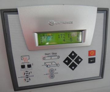 Панель управления Экран дисплея отображает настройки и рабочие параметры: температуру клея, индикацию работы узлов станка. Система показывает кол-во используемой кромки (счетчик длины кромки), количество обработанных деталей, кол-во отработанных часов. В случае неисправности на дисплее появляется описание неисправности с указанием агрегата и детали. |