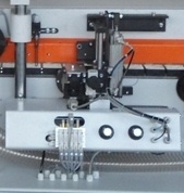 Опорный копир перед клеенаносящем валом предохраняет от удара и загрязнения передней край заготовки о вал во время подачи заготовки; исключает соприкосновение вала с торцом заготовки и возможность повреждения торца заготовки о насечки клеенаносящего вала. |