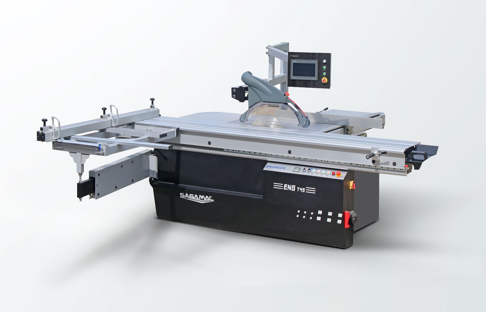 Форматно-раскроечный станок T45 создан на базе станины и прочной системы . Это настоящий подарок для рынка благодаря очень разумной цене и высочайшей производительности, сравнимой с флагманской моделью. Пильный блок оснащен 10-дюймовым сенсорным экраном управления, дельта-сервоприводом, точностью до 0,01 мм, защитой от столкновений и защитным кожухом европейского стандарта для сбора пыли, электрическим подъемом и наклоном полотна с цифровым дисплеем В базовую комплектацию станка Т45, входит цифровая линейка поперечного реза или микрорегулировка, плавным пуском по стандарту CE и функцией быстрой остановки полотна за 4 секунды, а также геометрической линейкой реза .В качестве опции завод предлагает оснащение станка . лазером, дистанционным управлением Рабочий форматно-раскроечный станок Т45 предназначен для решения любых сложных задач.
