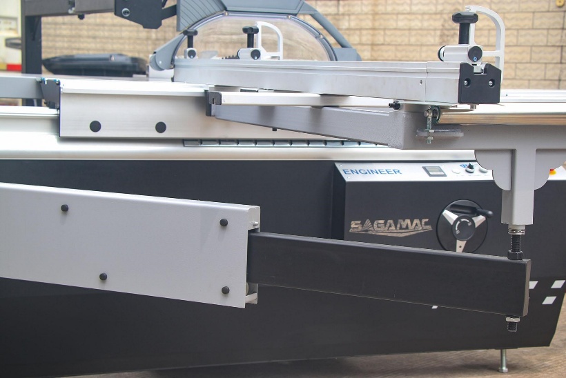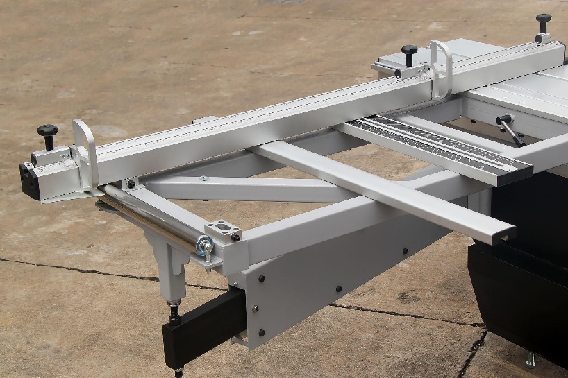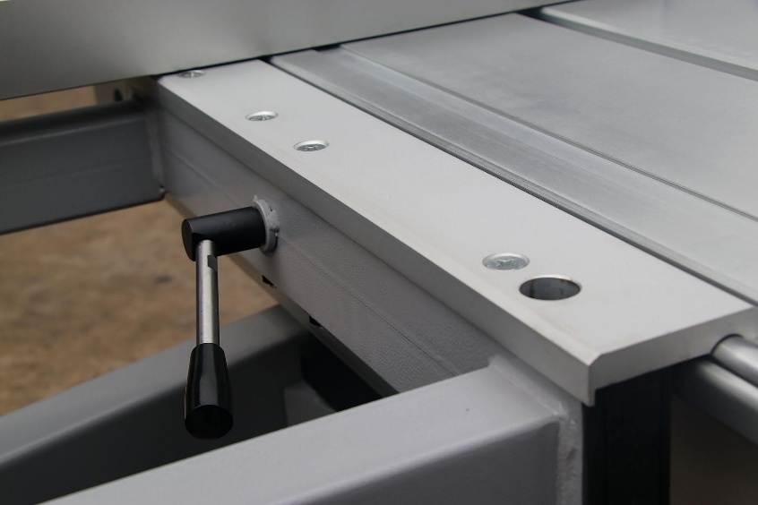 Стальные удлинители траверсы точные и шлифованные обеспечивают более устойчивую опору на боковом столе, особенно при размещении тяжелых материалов на подвижном столе; это обеспечивает производительность намного выше чем, чем у алюминиевых рычагов. | Шарнир удлинителей — внутренний 30-миллиметровый шпиндель, что также является секретом высокой грузоподъёмности форматно-раскроечного станка модели Т45 |