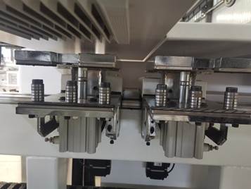 Два автоматических захвата надежно фиксируют заготовку толщиной до 60мм. Максимальная скорость перемещения -120м/мин. Захваты оснащены системой обдува. |
