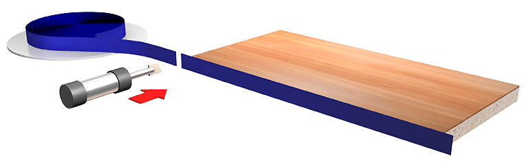 Подача кромочного материала в зону приклеивания осуществляется автоматически из магазина.