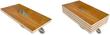 Привод верхнего прижима (прижимная балка) осуществляется от двух пневмоцилиндров, что обеспечивает жесткий и равномерный зажим плит ДСтП во время раскроя. |