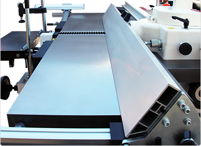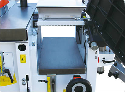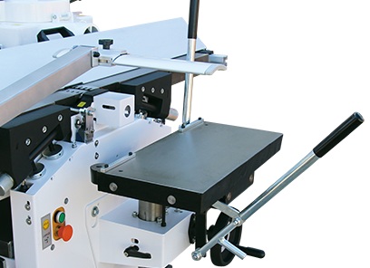 ФУГОВАЛЬНЫЙ УЗЕЛ Литые фуговальные столы являются надежной базой при обработке. Наклон направляющей линейки позволяет снимать фаску. |
